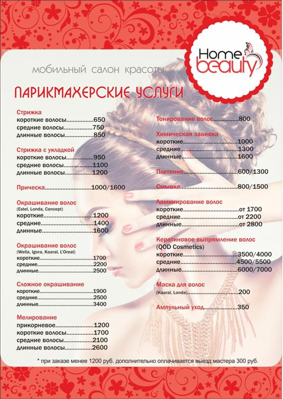 Прайс-лист парикмахерской