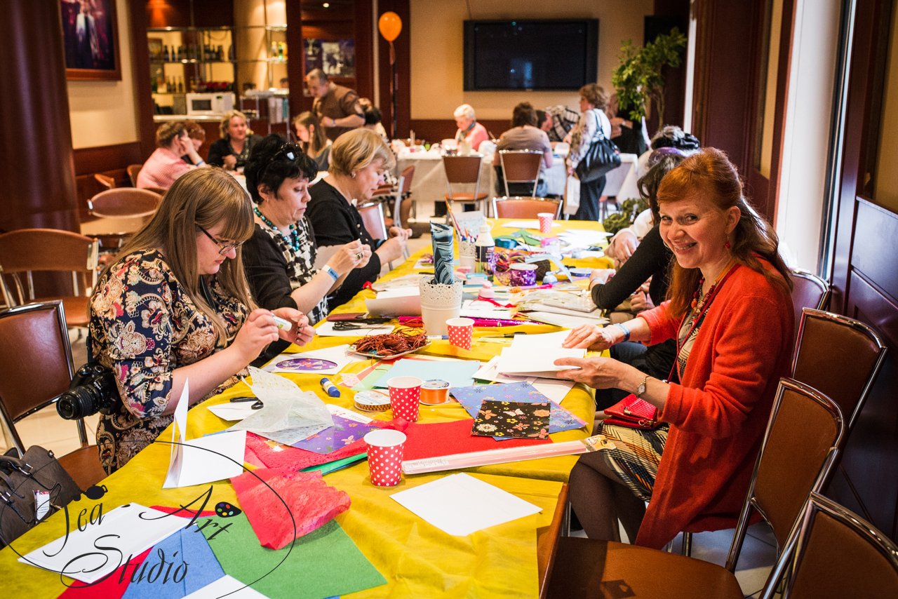 Обсуждать проблемы прикладного искусства и педагогики. Аля ушла туда слушать доклады, а я уж остался. Работа у нас всё ж небезопасная. Всегда под руками острые ножи. Как бы чего не вышло. Я сидел, смотрел, ходил от стола к столу, в учебный процесс не вмешивался. Знал, что Юля сама всё покажет и объяснит. Поначалу все усердно делали цветочки. Потом многие стали делать резьбу. И вот тут выяснилось, что у нас не хватает рисунков для резьбы. У нас были заготовки — бабочки и орнаменты, нарисованные прямо на бересте. Их-то и не хватило. И мне пришлось подключаться и рисовать новые.