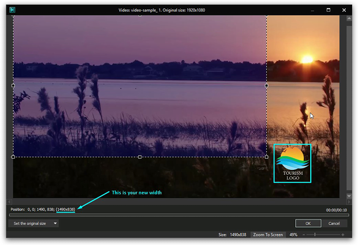 Размер и положение наложенного изображения можно настроить.