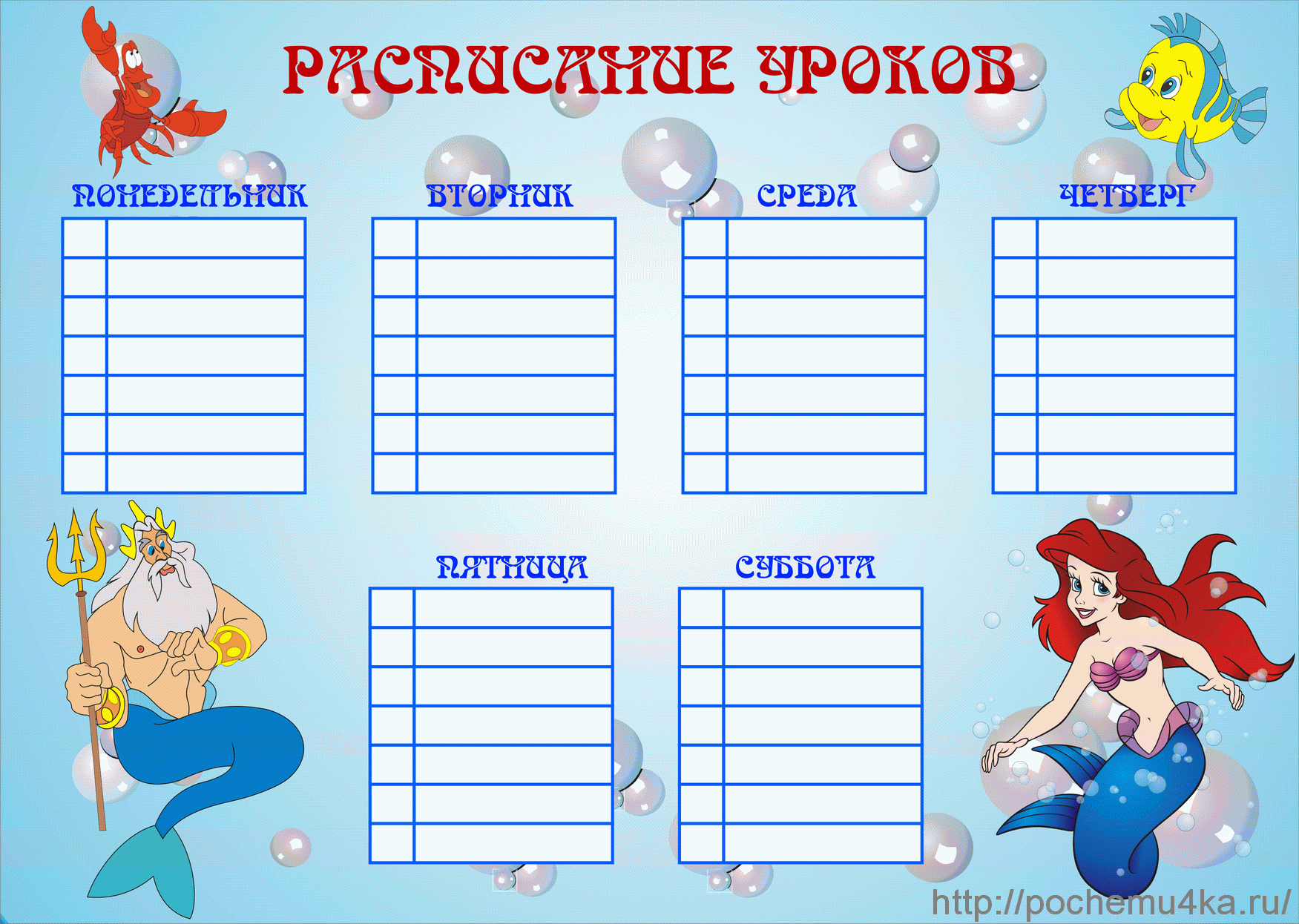 Лучше, чтобы принтер был цветным, тогда и школьное расписание будет выглядеть гораздо веселее. На некоторых сайтах можно найти и черно-белые шаблоны, которые ребенок может раскрасить.