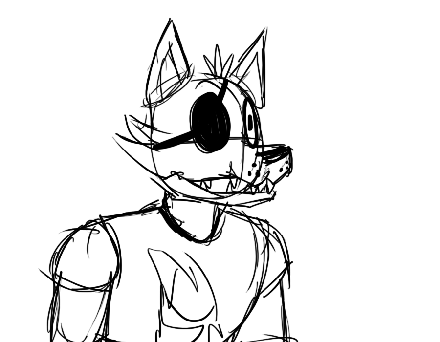 Для начала мы с вами должны нарисовать мордашку Фокси. Это будет пиратская повязка, глаза, рот и брови.