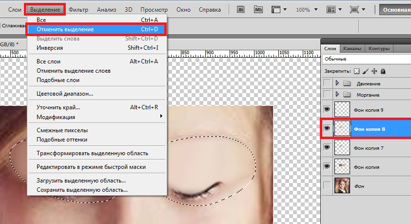 Если нам надо удалить пиксели, находящиеся в самой зоне выделения, то, как уже понятно, следует просто нажать клавишу Delete.